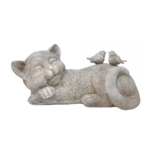Cat with Birds Pet Memorial Statue constructed of quality resin. Dimensions: 4 H x 9 W x 4 D