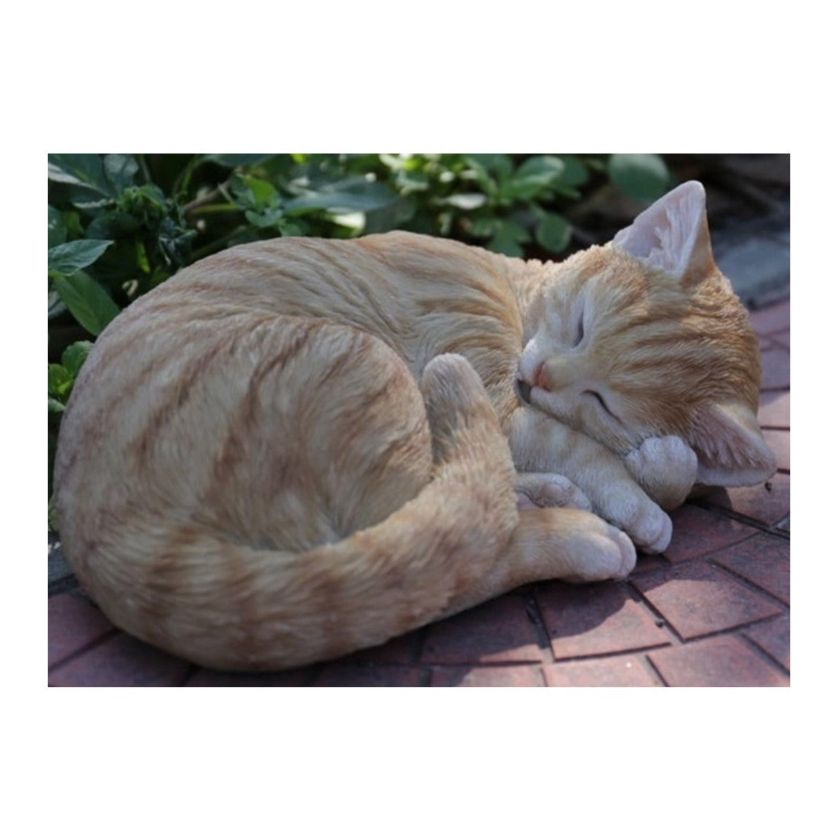 Orange tabby cat lying and sleeping figurine is a wonderful addition to your home and garden décor. Good for both indoors and outdoors and a great gift for cat lovers. Made from durable polyresin.