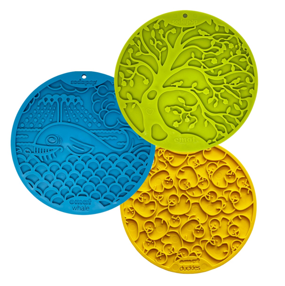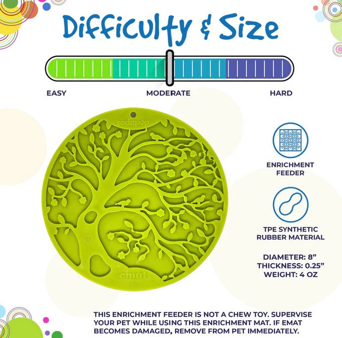 ENRICHMENT: Licking soothes and calms your dog. Spread your pet’s favorite soft treat across the surface of the mat, ensuring the treat is pushed down into the surface of the mat. This eMat is the perfect enrichment tool for your dog.