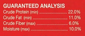 Cage-Free Duck, Peas, Chickpeas, Turkey Meal, Turkey Liver, Sweet Potato, Duck Fat (Preserved with Mixed tocopherols), Cane Molasses, Natural Vegetable Flavor, Cage-Free Turkey, Goose, Turkey Gizzard, Pumpkin Seed, Organic Cranberries, Organic Spinach, Organic Broccoli, Organic Beets, Organic Carrots, Organic Squash, Organic Blueberries, Fenugreek Seed, Salt, Flaxseed, Gelatin, Pumpkin, Mixed Tocopherols (preservative).