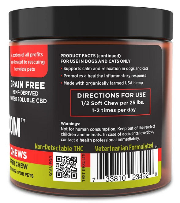 Suggested Use: Give 1/2 Soft Chew per 25lbs of body weight one to two times per day. Amount given may be adjusted up or down.