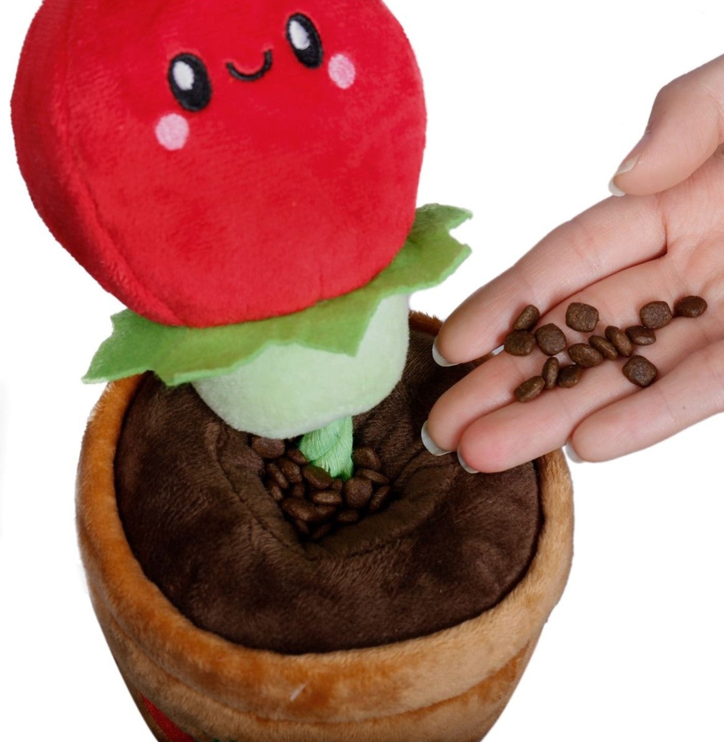 Mark Your TerritoryTM in the great outdoors with Tomato Treat-and-Tug Dog Toy! Designed with durable fabric and stuff made from 100% recycled plastic bottles, this toys is paw-fect for tug play and encouraging their hunting and exploring instincts. It includes pockets throughout hide kibble and small treats. While they search and forage, they'll encounter many squeaker and crinkle sounds for search-and-find fun. Your pup will forage, squeak, and crinkle to their heart's delight!
