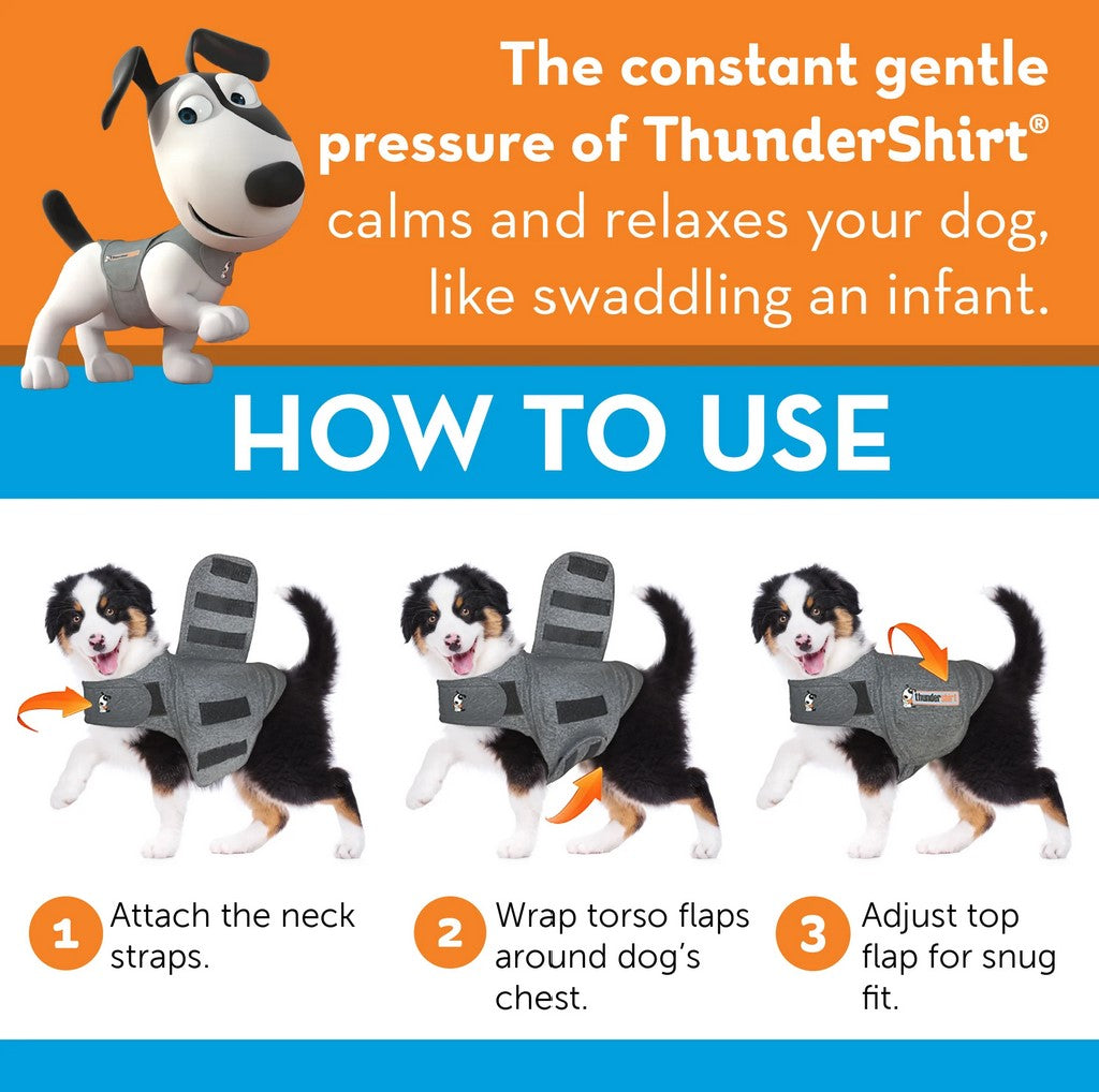 The ThunderShirt® is recommended for thunder, fireworks, separation anxiety, travel, & vet visits. Treat anxiety, fear, and over-excitement in style! You’ll love the ThunderShirt®’s calming effect on your dog.