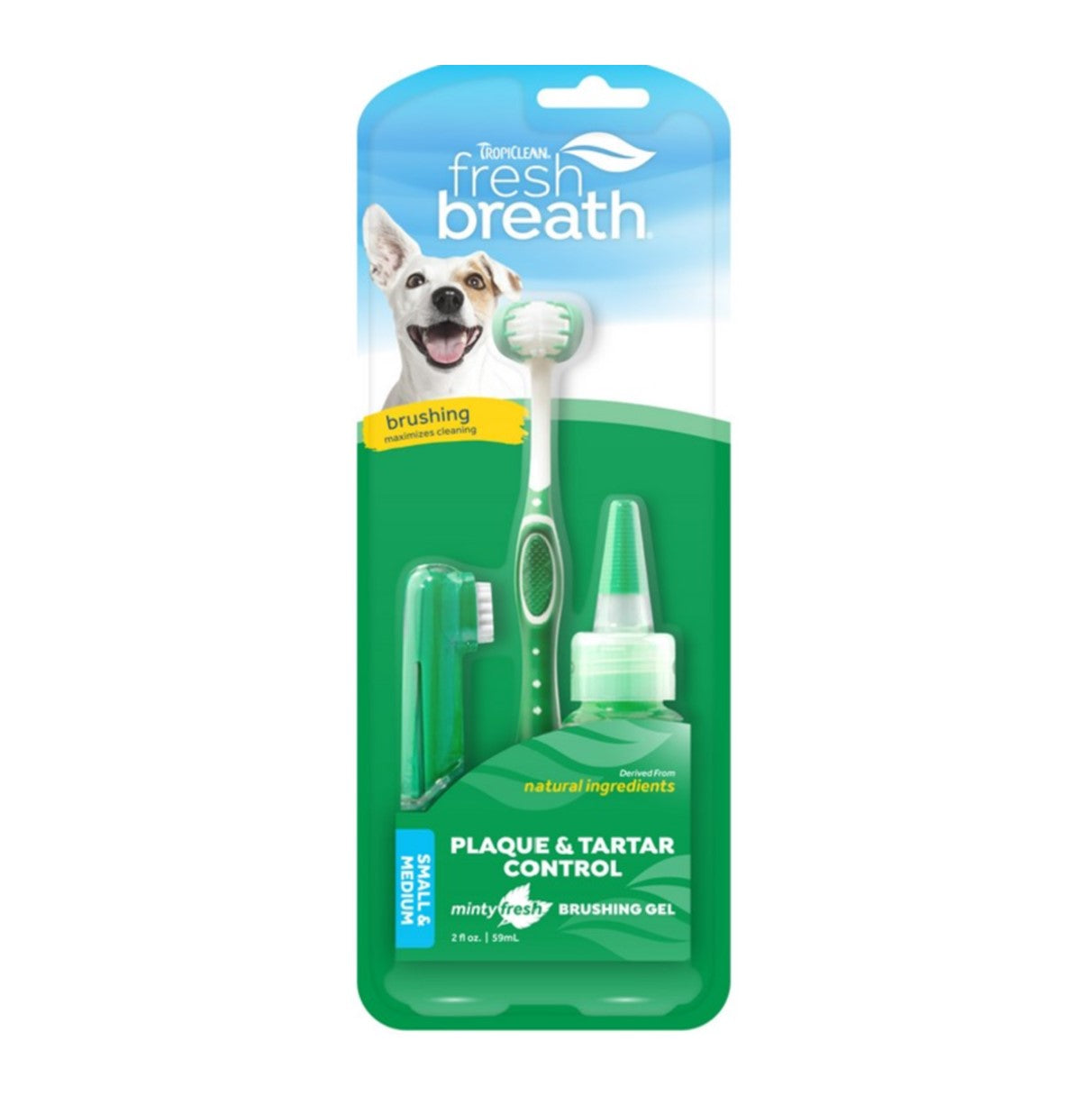 The Fresh Breath Oral Care Kit for Small & Medium Dogs provides everything you need to establish a consistent oral care routine for your pet. The kit includes a Fresh Breath TripleFlex™ Toothbrush, Gentle Finger Brush, and Brushing Gel. When used regularly, you can provide your pet with top-notch dental care, right at home.