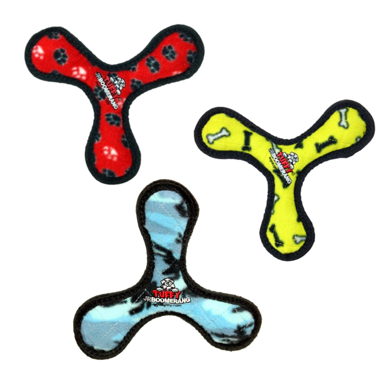 Tuffy® Ultimate™ Boomerang - Great for interactive play with one or multiple dogs. This extremely, durable dog toy is great for playing tug or fetch! Soft edges won't hurt gums. Machine washable (air dry) and it floats!