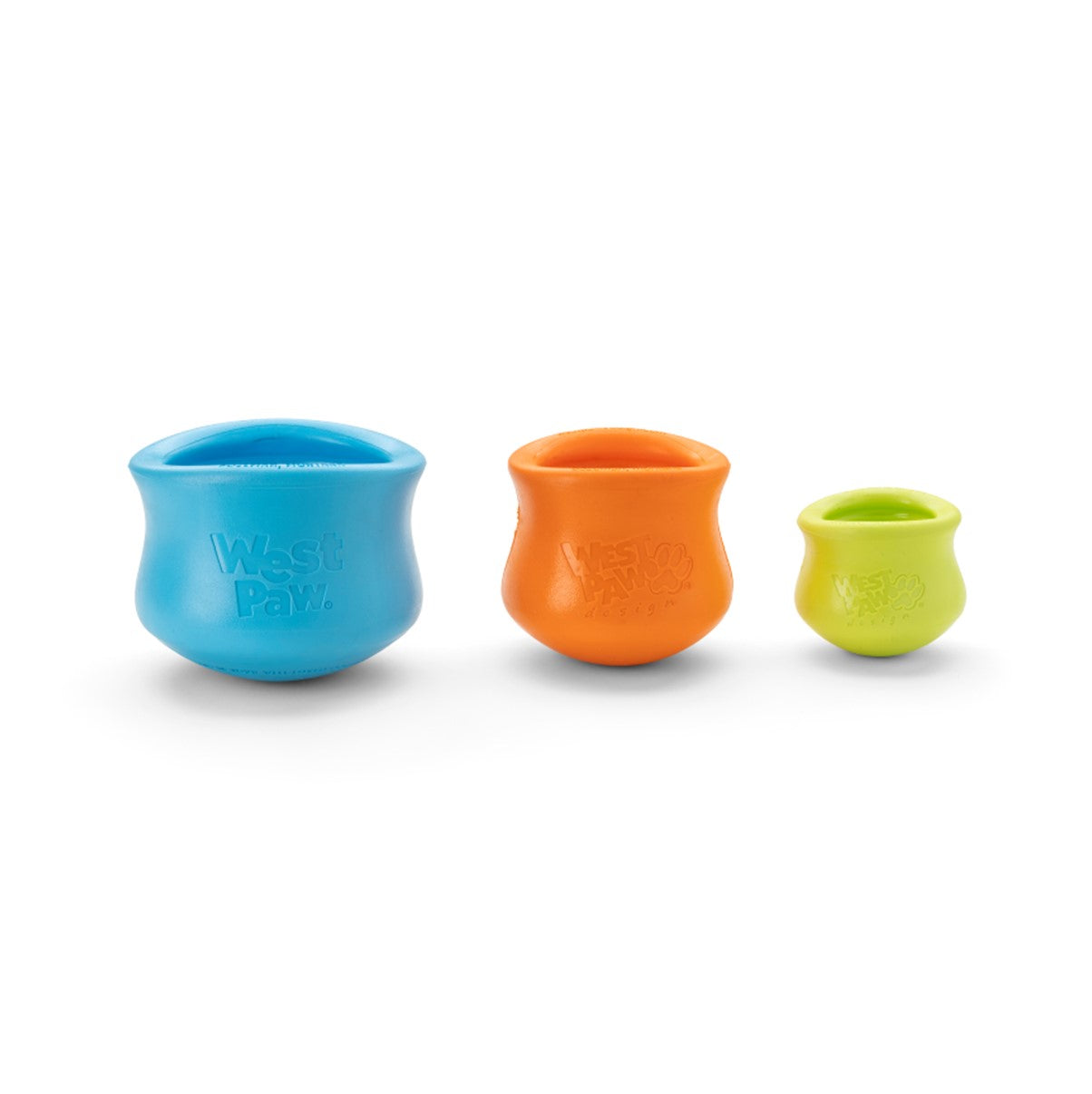 Our best-selling customizable puzzle and treat toy is designed to be filled with a dog's favorite kibble or treats. Toppl's soft, rounded inner 'teeth' contain a contoured cavity to hold treats in place until your dog nudges them out. To change up the challenge, simply connect the XL and Large or Small and Large together.