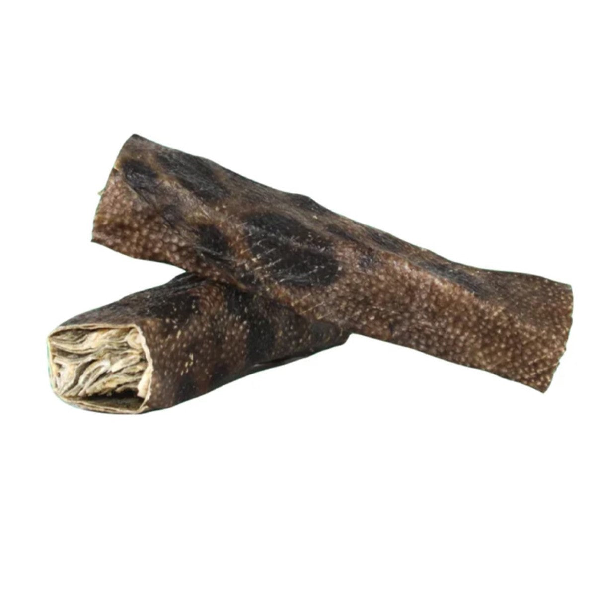 Wolffish Chewy Sticks are a unique chewing experience that deliver a protein-rich treat dogs absolutely love! The hand wrapped Wolffish Chewy Sticks are super tasty dog chews made from from 100% wolffish fish skin. Each Stick is roughly 8-9" in length and full of flavor that your dog will adore. The Sticks have a rough texture and help to remove tartar from your dog's teeth.