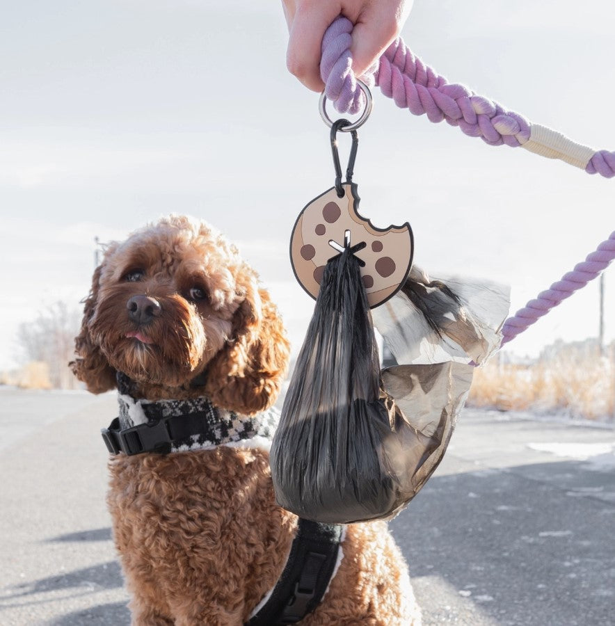 Let's face it, no one likes to carry their used (and stinky) waste bags in their hands when walking the dog. it's messy, unhygienic, and just plain gross. The Poopy Loop holds onto your waste bag and conveniently clips onto your leash. Made of thick durable rubber so your hands stay clean. Keep your walks simple and your used poo bags where they belong - out of your hands!