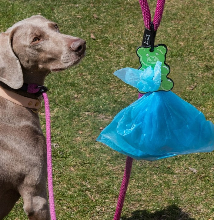 Let's face it, no one likes to carry their used (and stinky) waste bags in their hands when walking the dog. it's messy, unhygienic, and just plain gross. The Poopy Loop holds onto your waste bag and conveniently clips onto your leash. Made of thick durable rubber so your hands stay clean. Keep your walks simple and your used poo bags where they belong - out of your hands!