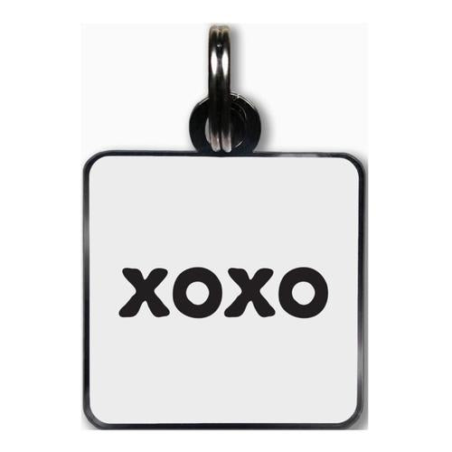 1 1/8" square with jump ring. Lightweight hard enamel with black nickel plating.