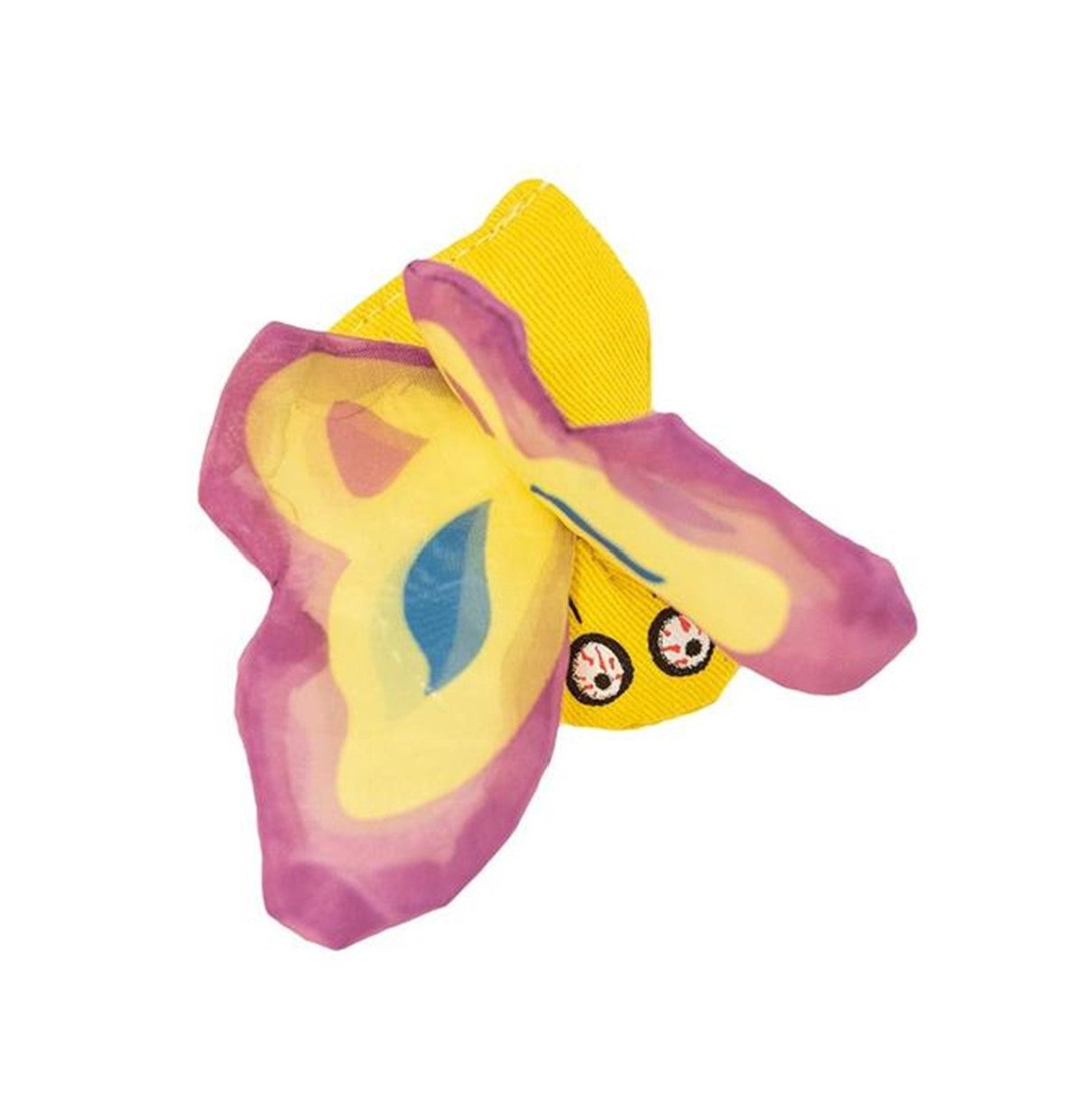 Bright colors, crinkly wings, and 100% stuffed with pungent, organically grown catnip makes this the perfect toy for your cat to pounce and play with!
