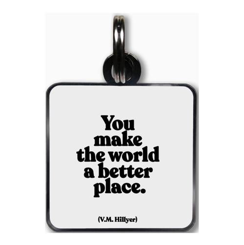 1 1/8" square with jump ring. Lightweight hard enamel with black nickel plating.